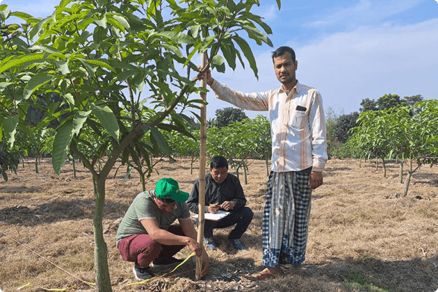 Despite being among the lowest emitters of GHG globally, Bangladesh has pledged to reduce carbon emissions by 22% (89.47 million tonnes), by the year 2030. In line with this commitment, SFSA Bangladesh has entered the carbon market to support farmers in the Barind Tract of the Rajshahi division. This region faces challenges such as soil erosion, limited nutrient retention capacity, and water shortages, making traditional crop cultivation difficult. However, these conditions also present opportunities for sustainable land use by cultivating tree fruit crops like mango, guava, and jujube, offering improved soil fertility and diversified income sources.
