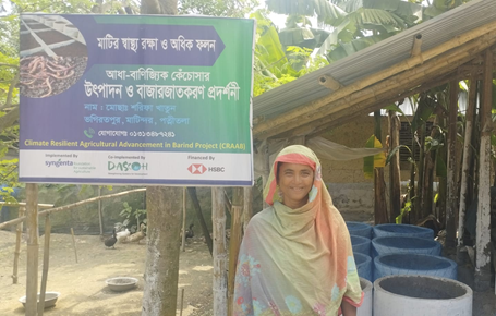 Barind Tract, situated in North-West Rajshahi Division of Bangladesh at 24.40-24.80°N, 88.30-88.80°E and occupies about 1,600 km2 (159,964 ha) area. It is clearly differentiated from other parts of the country because of its terraced land with soil of low fertility, sparse vegetation, absence of major river channels, and comparatively low rainfall with a long dry period, from October to May. It is regarded as the most drought prone area of the country due to its relatively low (compared to the rest of Bangladesh) and erratic precipitation (average 1,440 mm average annual rainfall but this can vary spatially and seasonally between 790 and 2,200 mm), limited groundwater reserves and recharge, poor water holding capacity of surface soil in the post-rainy season along with high summer air temperature, with maximums usually 35-40°C in April-May. The High Barind Tract (HBT) is relatively uplifted {11-48 m. (Ref. Rashid, M. B., S.U. Islam & M. Badrul Islam (2015) “River morphology and evolution of the Barind Tract, Bangladesh”. Journal of Nepal Geological Society, Vol 49, pp 65–76.) above sea level} and not subject to annual inundation like the flood plain areas of Bangladesh. Adequate rainfall is important for recharge of the groundwater level as well as for long-term sustainability of the environment for flora and fauna; however, crop performance largely depends on distribution and variability of the rainfall matching with the growth stages of the crop. Climate variability directly affects the agricultural systems and any consequent yield reduction thus affecting the livelihoods of 75-80 % of the HBT population that directly depends on agriculture and its related sectors. The Climate Resilient Agricultural Advancement in Barind (CRAAB) Project is a catalytic initiative planned as part of the targeted transformative agenda for sustainable groundwater-based irrigated agriculture in the Barind Tract. The project is being implemented by SFSA Bangladesh in partnership with DASCOH Foundation sponsored by The HSBC Bank. The overarching goals of this project are to promote community-wide adoption of climate-smart agriculture in Barind Tract to increase the income of 25,000 smallholder farmers by 25%, through cultivating fallow land on 1,250 ha, reducing groundwater abstraction by 1.53 million m3 (Rice 1.4 M m3 and Mango 0.13 M m3), and creating additional employment opportunities for 400 youth and women.